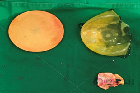 수술 후 정상인 보형물 및 파열상태의 보형물